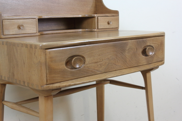 天板上には小さな引き出しや棚がついており、お気に入りの物だけ置いて